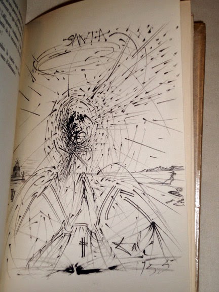 This one, a softcover (with dust jacket) published in 1958, is written in French, and it features three full-page black & white illustrations by Dali. Stamp numbered at the back of the book, limited to 1000 copies.